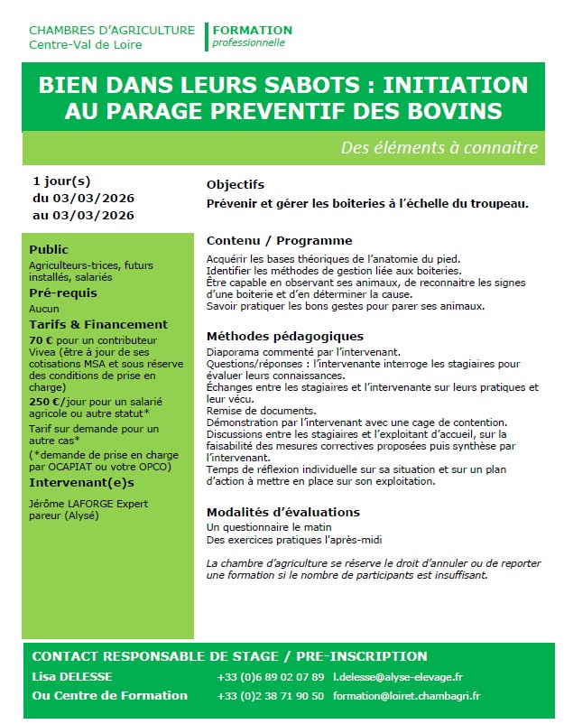 ➡️ une journée pour améliorer durablement la santé des pieds de vos bovins.